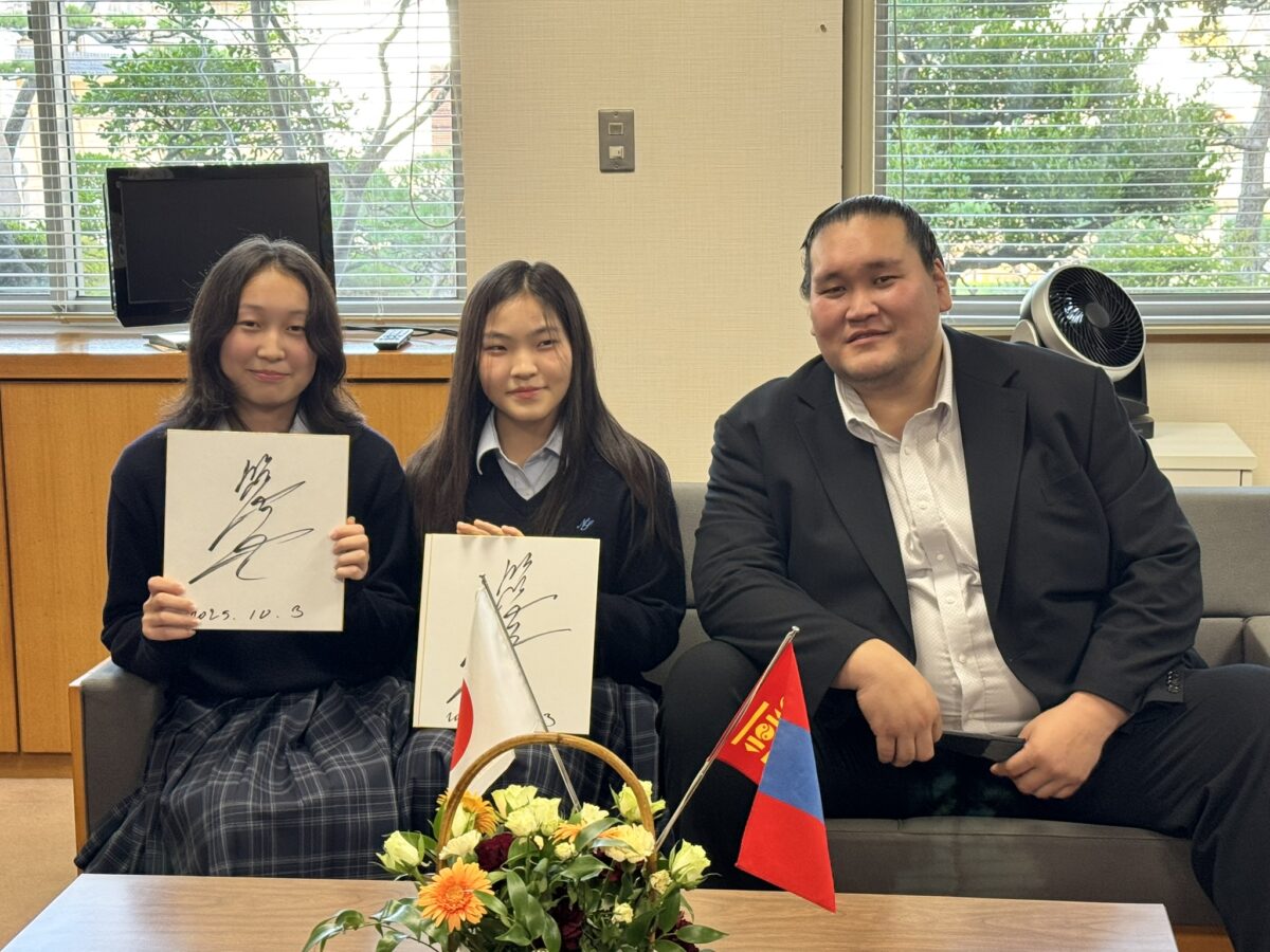 今回のご来学では、本学園に在籍している留学生を、同じモンゴル出身で角界の頂点を極めた親方から直接激励していただきました。
