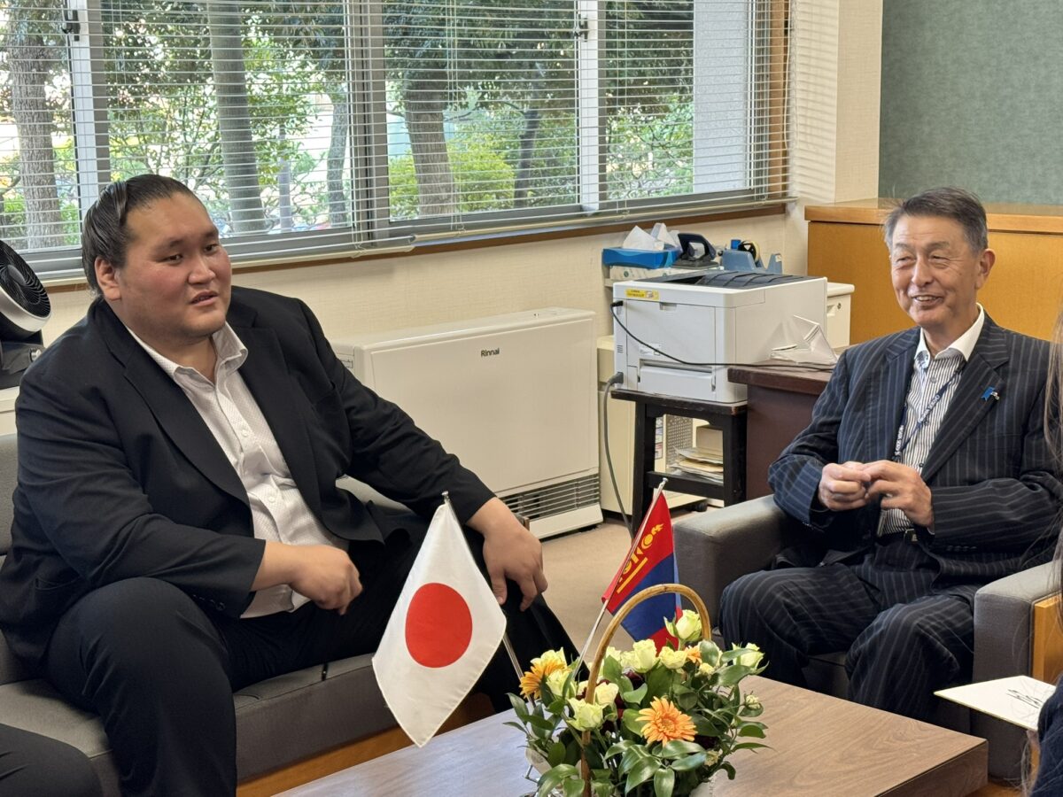 10月3日(金)、大相撲の伊勢ヶ濱親方(元第73代横綱 照ノ富士)が本学を訪問されました。