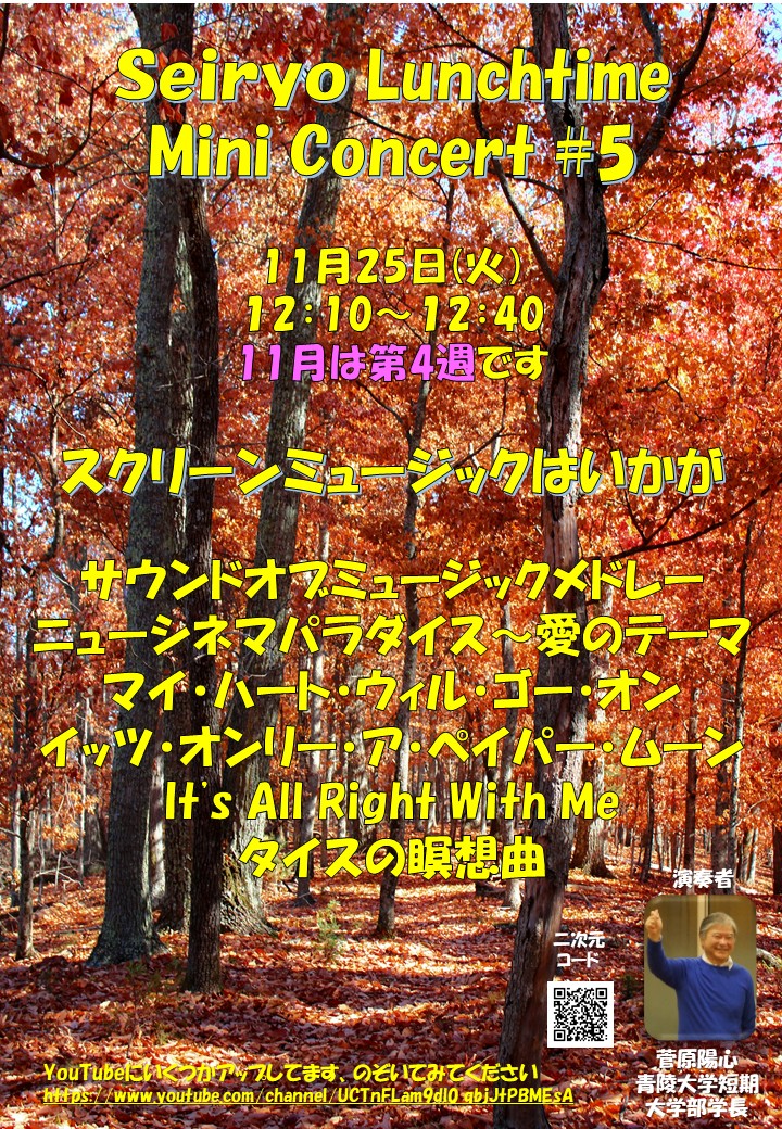 新潟青陵大学短期大学部 菅原陽心学長「Seiryo Lunchtime miniconcert」11月開催のご案内