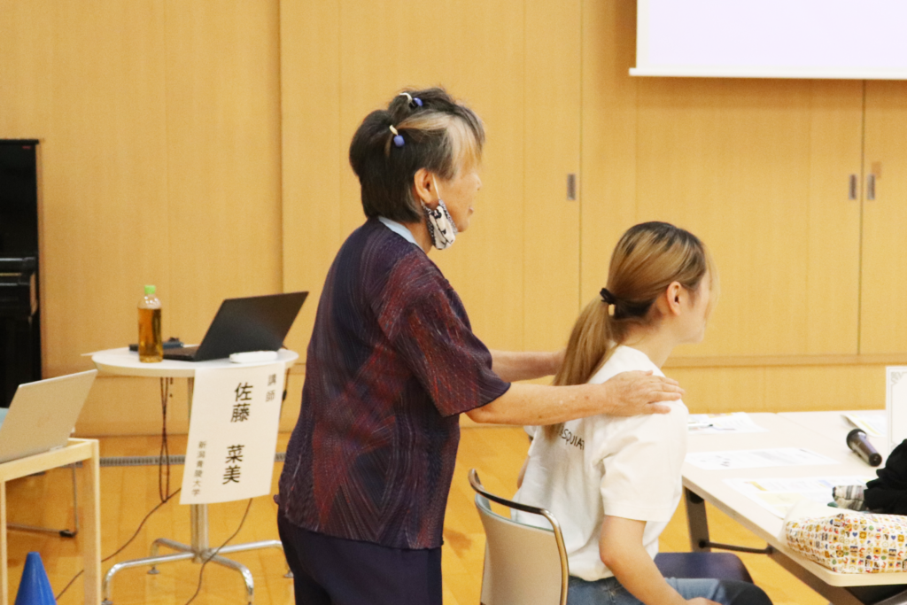 講義後のワークショップでは、大人向けのボディケア体験や、一緒に参加をしてくれたお子さん達とふれあい遊びを楽しみ、学びと癒しの講座となりました。