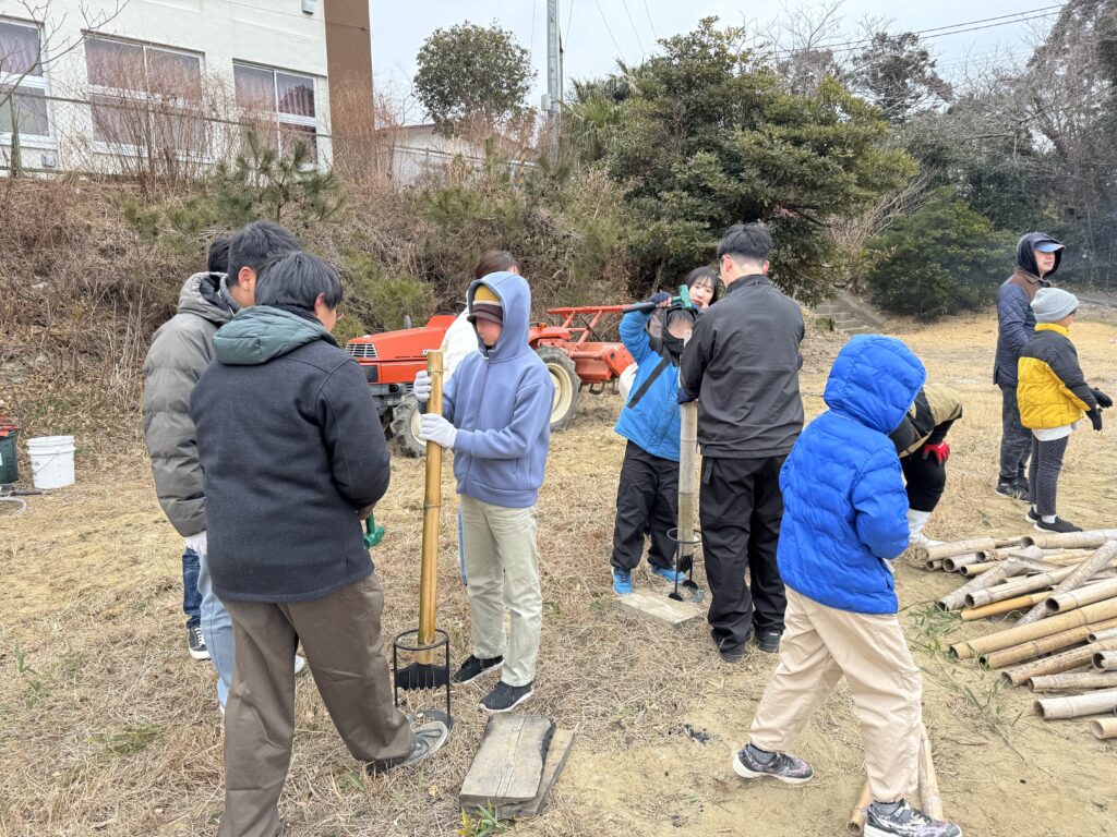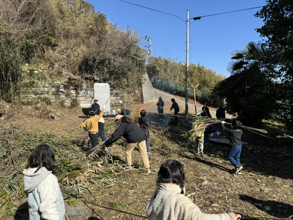 大正大学が主催で実施している「塩竈市フィールドワーク」に、2019年度より本学園の学生が参加し、連携事業として活動を行っています。塩竈市内の小学生を対象に、餅つき大会や、島の散策、竹林整備、竹炭づくりなどのイベントを島の方々と交流しながら行うことで、島の魅力や自然に触れる楽しさなどを感じることができる活動となっています。