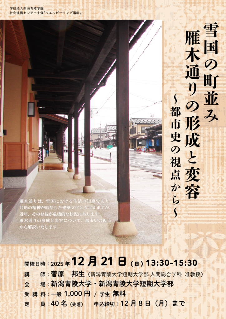 【ウェルビーイング講座】雪国の町並み雁木通りの形成と変容〜都市史の視点から〜